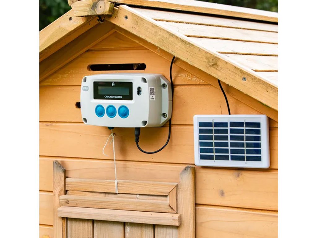 Chicken Guard Pro Solar má veľmi výkonný motor, ktorý dokáže zdvihnúť až 2 kg, takže je ideálny na otváranie väčších a ťažších dvierok. Prístroj je vybavený veľmi odolným puzdrom, a tak zaisťuje perfektnú ochranu pri extrémnych poveternostných podmienkach až do teploty -20°C. Všetky potrebné informácie o nastavení sú prehľadne znázornené na dvojriadkovom LCD displeji. LCD displej prejde po určitej dobe nečinnosti do "režimu spánku", aby sa zvýšila životnosť displeja. Zariadenie znovu "prebudíte" stlačením tlačidla MENU. Pre nastavovanie programov slúžia extra veľké tlačidlá, aby bolo možné ich ovládať aj v rukaviciach.