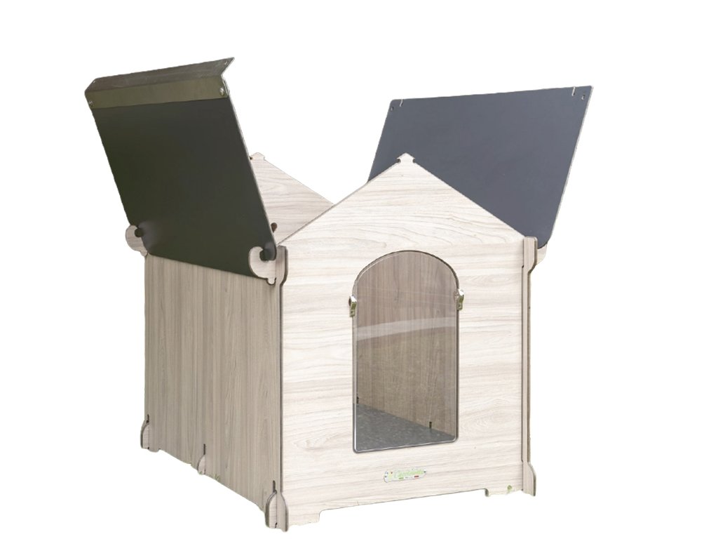 - Psie búda vyrobená touto inovatívnou technikou je vodotesná, odolná voči zápachu a neuvoľňuje žiadne toxíny nebezpečné pre životné prostredie a pre zdravie psa.