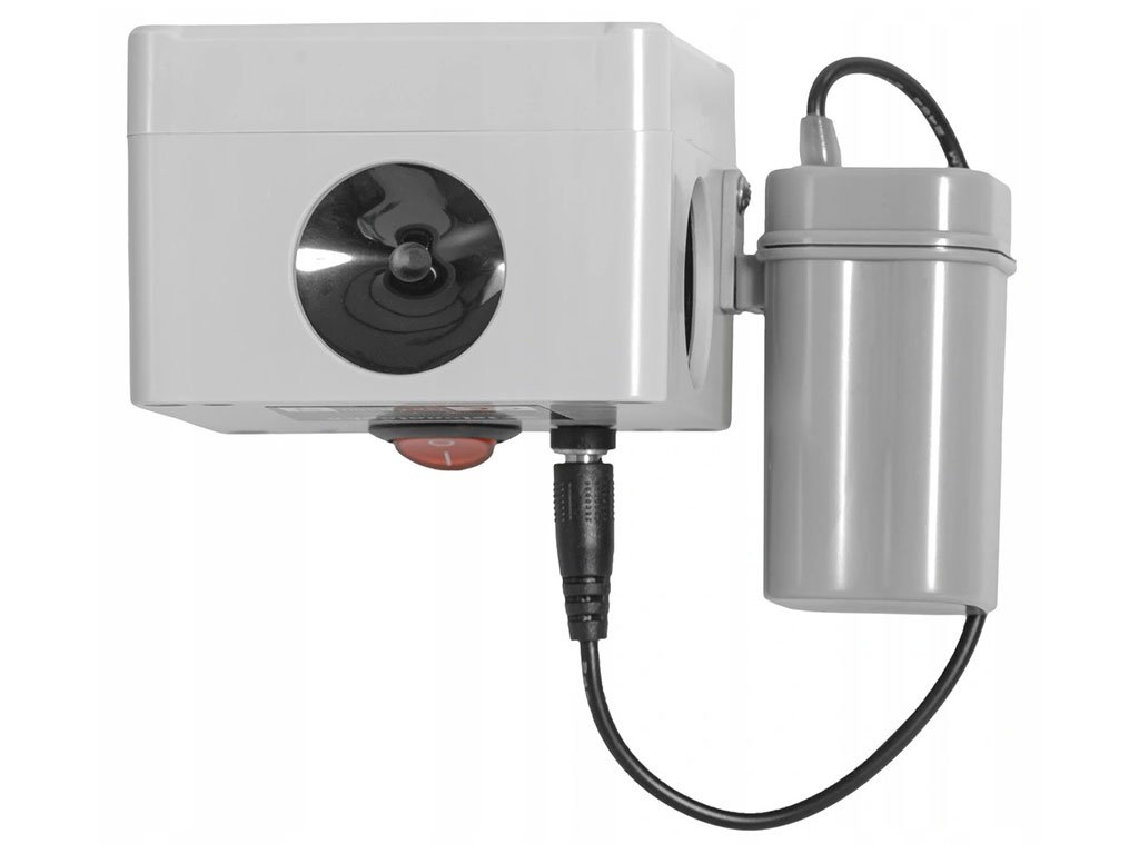 Priestorový ultrazvukový odpudzovač zveri, bezpečný pre človeka i domáce zvieratá, vhodný na plašenie kún a hlodavcov, vo vnútorných i vonkajších priestoroch, s odolným vodotesným krytom, na uchytenie cez magnetický držiak, s rozsahom tónu v uhle 270°, s automatickou zmenou kmitočtu, s dosahom až 2500 m2, s napájaním cez 4xAA batérie, s 3 x 40 mm membránovým reproduktorom, s rozmermi 85x85x55mm.