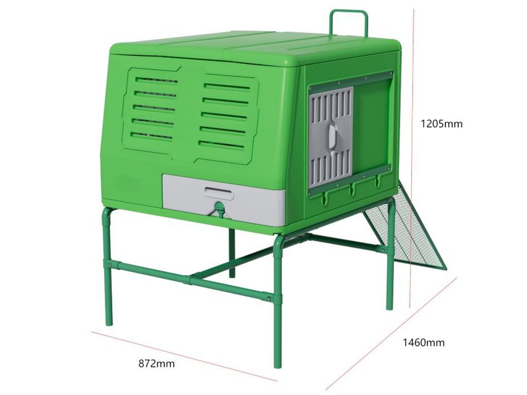 S rozmermi 87,2 × 146 × 120,5 cm ponúka tento kurín ideálny priestor až pre 3 sliepky, aby mali pohodlie, bezpečie a dostatok miesta na znášku aj odpočinku.