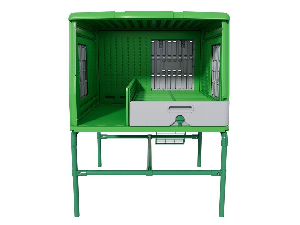 Kurín je navrhnutý tak, aby bolo jeho čistenie rýchle a pohodlné. Hygienický povrch umožňuje ľahké umytie a udržanie čistoty bez zbytočnej námahy. Vďaka dobrému prístupu do vnútorného priestoru je bežná údržba jednoduchá a prehľadná. Pravidelná starostlivosť tak nezaberie veľa času ani energie. Výsledkom je čisté prostredie, ktoré podporuje zdravý a spokojný chov.