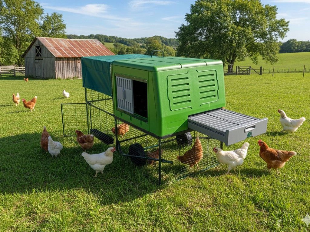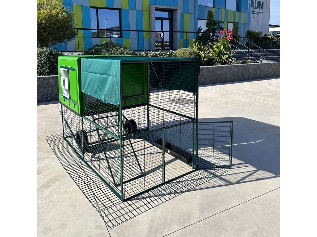 Mobilný kurín pre sliepky, vhodný pre 4-6 sliepok, integrovaný výbeh, kolieska pre ľahkú manipuláciu, kvalitný a odolný materiál, ľahká údržba, moderný dizajn, rozmer 120,7x204,5x120 cm.