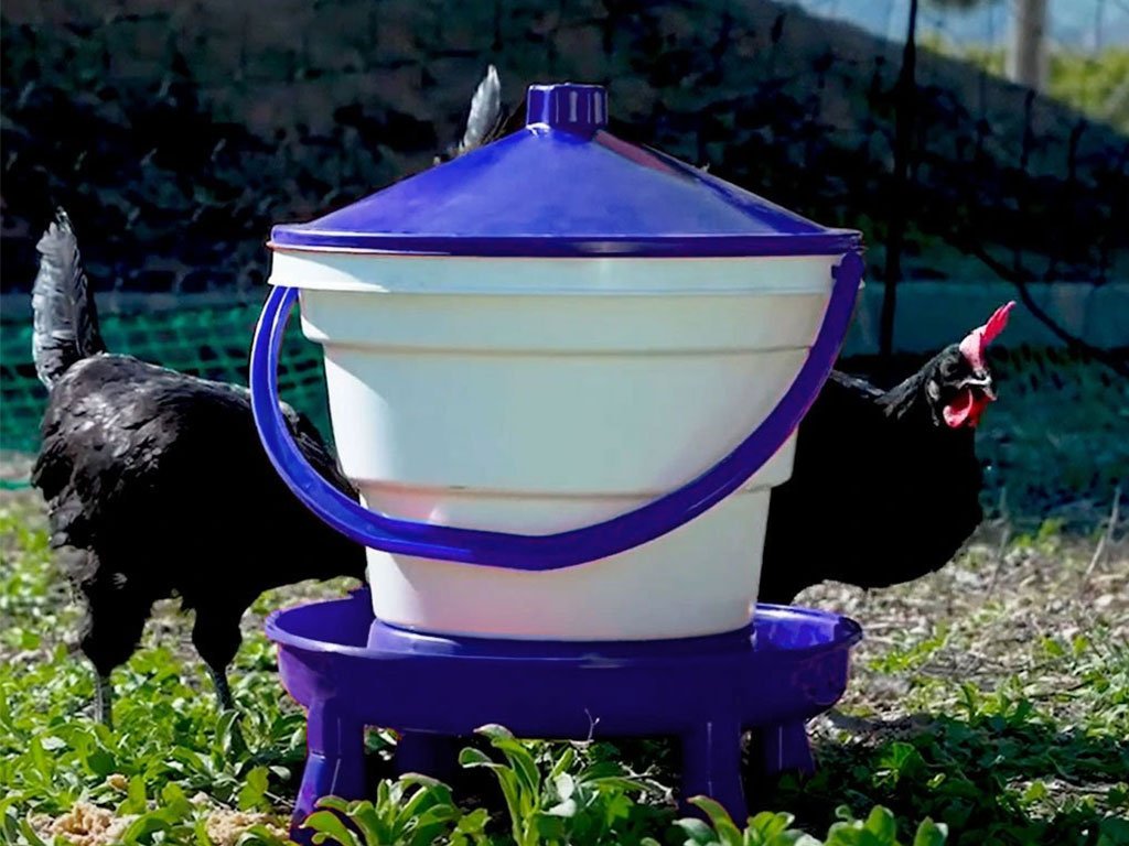 Zásobník s objemom 15 l, do 40 sliepok, Ø 380 mm x V 460 mm, na nožičkách s plavákom.