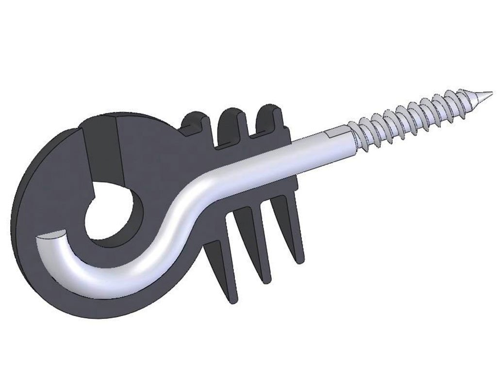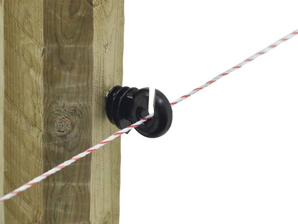 Kruhový izolátor, pre elektrický ohradník, pre drôt, lanko alebo pásku, s pozinkovanou skrutkou, zosilnené steny a izolačný golier, nárazuvzdorný plast, priemer 6 mm.