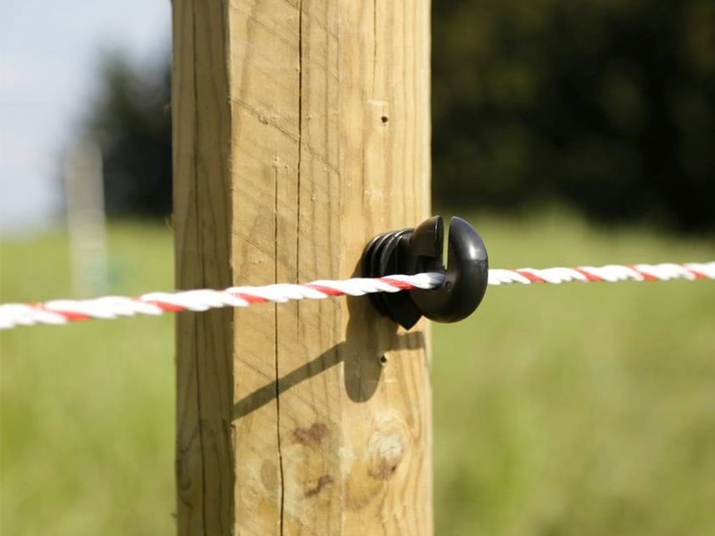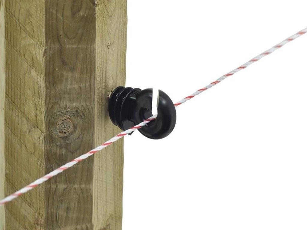 Kruhový izolátor, pre elektrický ohradník, pre drôt, lanko alebo pásku, s EDX skrutkou, bez nutnosti predvŕtania, najlepšie možné izolačné vlastnosti, nárazuvzdorný plast, priemer 6 mm.